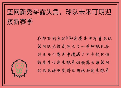 篮网新秀崭露头角,球队未来可期迎接新赛季